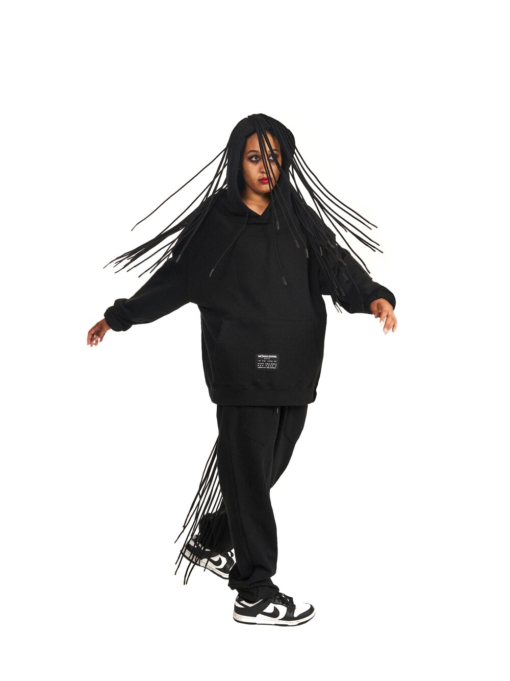 레게머리를 연상케하는 끈 디테일이 큰 특징